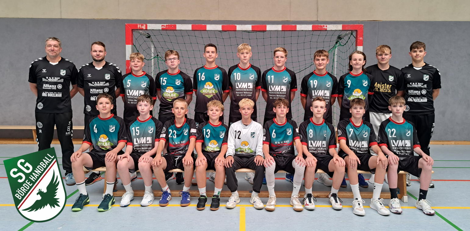 (Tabelle und Spielplan unter dem gemeinsamen Mannschaftsfoto der mC I und II)