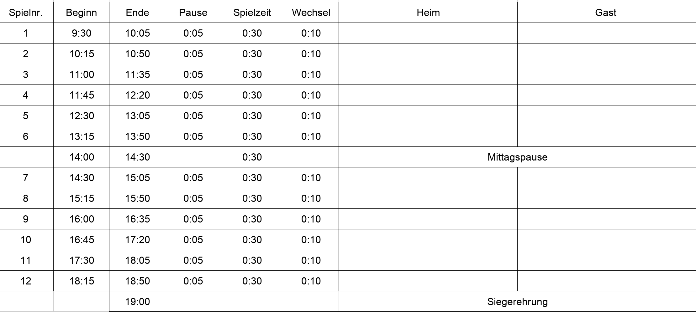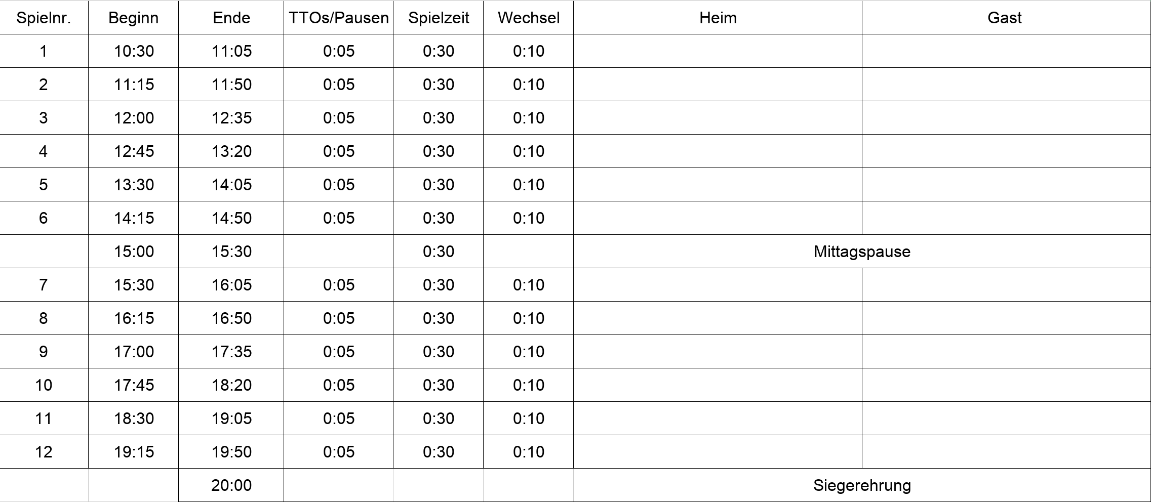 A-Cup und B-Cup spielen jeweils abwechselnd. Der B-Cup bestreitet jeweils das erste Spiel am Tag, der A-Cup das letzte Spiel.